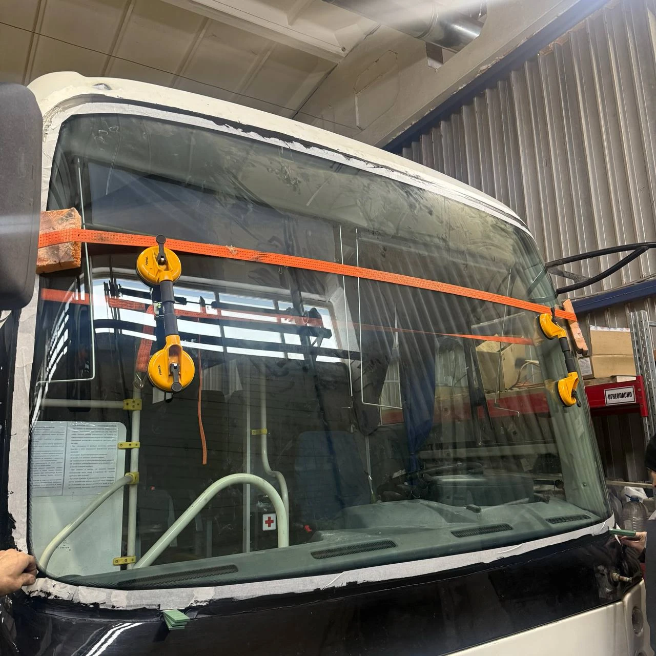 Замена лобового стекла автобуса.